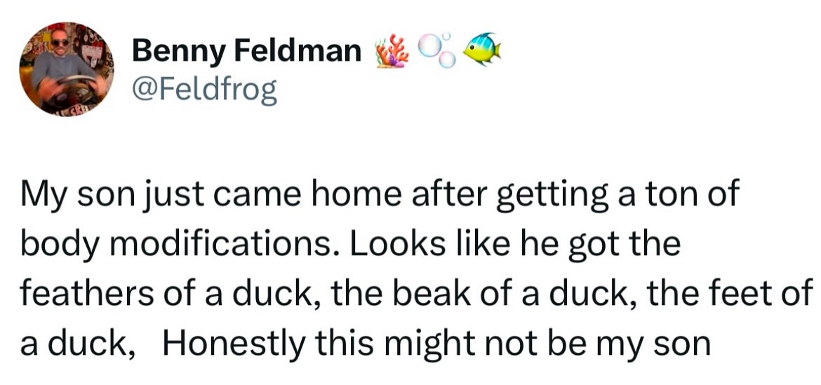 True, but this catduck thing is... I thought I raised someone cooler than that.