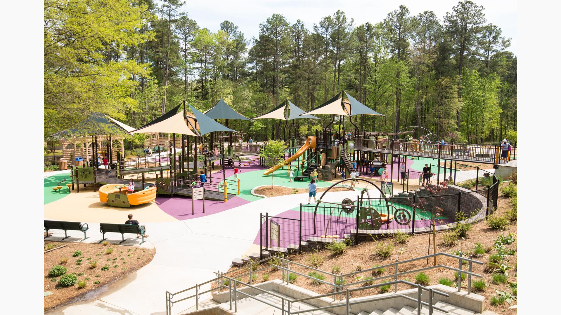 Sassafras All Children's Playground at Laurel Hills Park, On Edwards Mill Rd near Crabtree. Amazing park. They're remaking the community center tho.